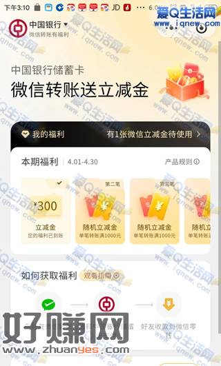 每个月最高奖励4笔,反馈转账1万,中了300元立减金,想参与的可以参与一下哦