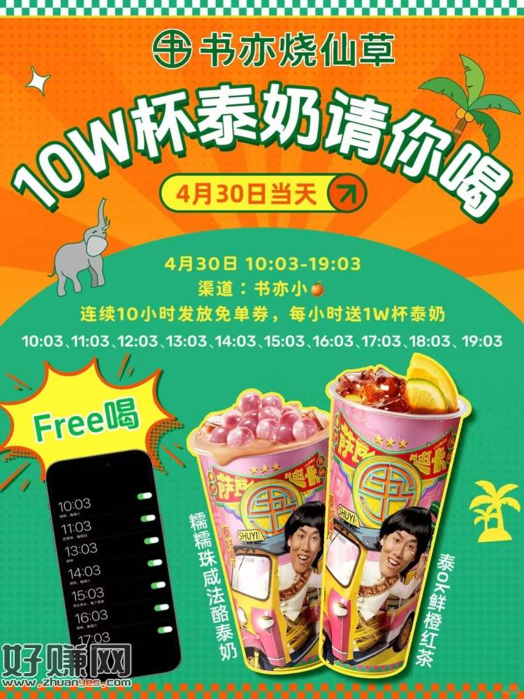 【预告】书亦烧仙草 30日当天 2026-4-28 23:00 | 2 | 0 | 线报 65 字 | 1 分钟内 【预告】书亦烧仙草 30日当天 连续10个小时 共送10万份兔箪 10:03 11:03 12:03 13:03 14:03 15:03 16:03 17:03 18:03 19:03 到时候具体口令蹲群里通知哈❗