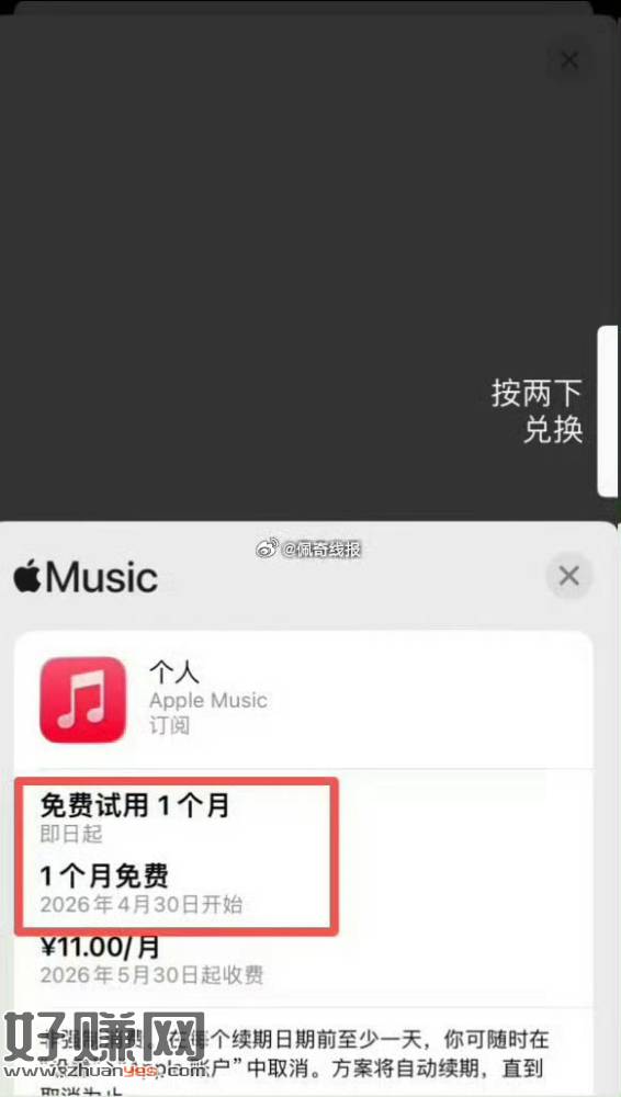 图三扫码免费领苹果音乐会员1-2月不等 2026-4-29 12:30 | 2 | 0 | 线报 64 字 | 几秒读完 图三扫码免费领苹果音乐会员1-2月不等https://plus.migu.cn/whalecallba … =SHAL_XS_APP_PT_061领取后去苹果账号订阅里取消自动续费,一定要取消自动续费不然到期后自动扣费