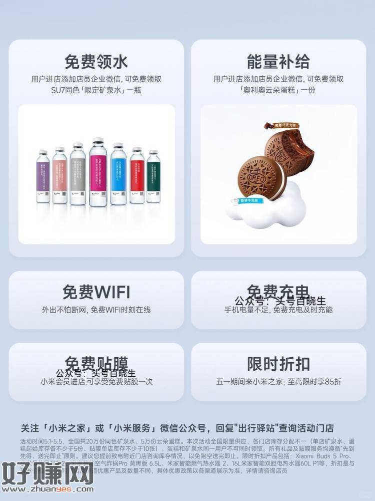 预告【小米之家送25w矿泉水等】 2026-4-29 13:30 | 3 | 0 | 线报 73 字 | 1 分钟内 预告【小米之家送25w矿泉水等】 ⏰5.1-5.5日 全国小米之家 到店添加企V 即可兔费领 矿泉水和云朵蛋糕一份 共计25w份 还能兔费充电/贴膜 门店:mp://djavsTtjenxPxAu